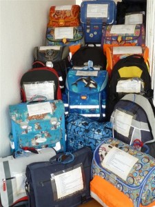 Dies sind einige der über 20 Ranzen und Schultaschen, die Kinder der Jahrgangsstufen 5G und 7G gespendet und für Kinder…