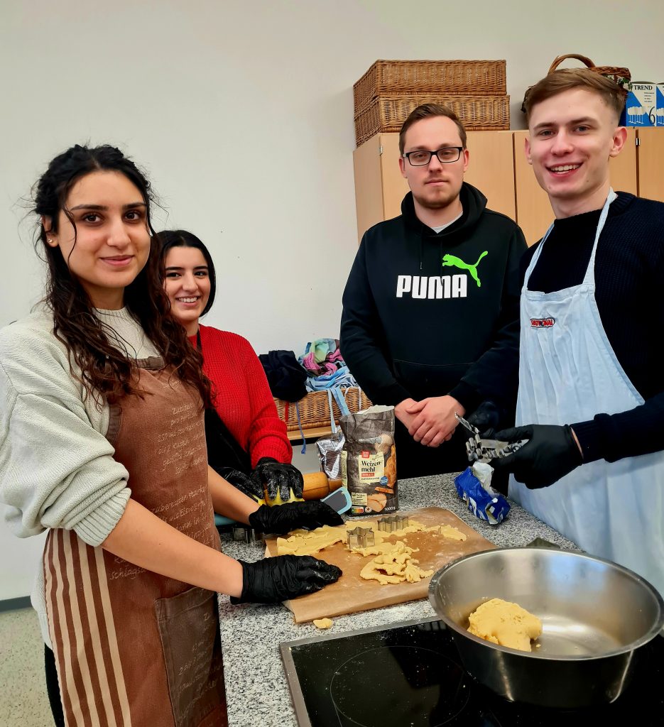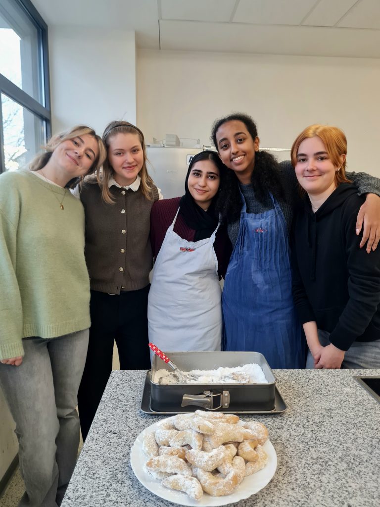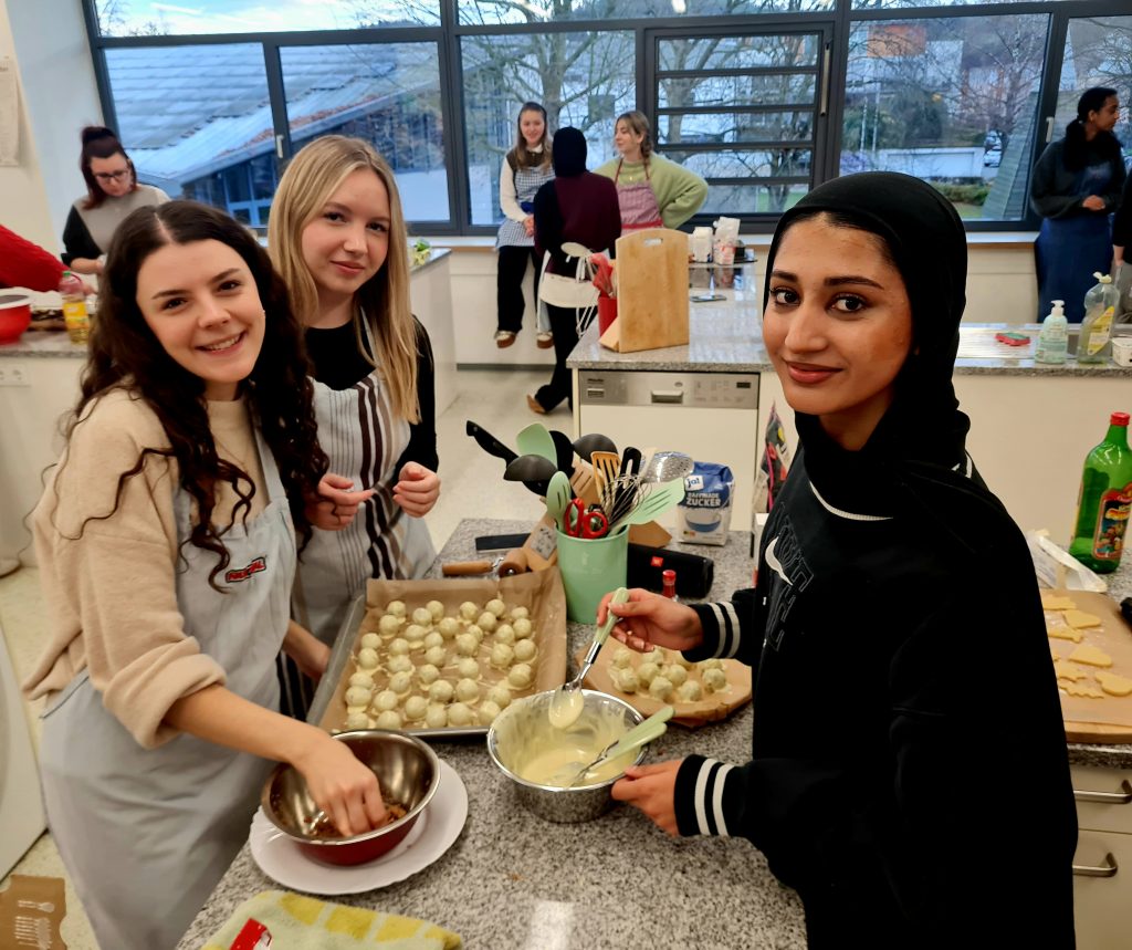 Am letzten Schultag vor den Weihnachtsferien tauschten wir die Englischlektüre gegen ein kulinarische Reise ein. Beim gemeinsamen Backen von Weihnachtsplätzchen hatten alle große Freude, und bei der anschließenden Kostprobe konnten wir uns davon überzeugen, dass sämtliche Sorten hervorragend gelungen waren. Diese Einschätzung wurde zudem von unabhängigen Experten – Herrn Schmöker und Herrn Stricker – ausdrücklich bestätigt 😊.