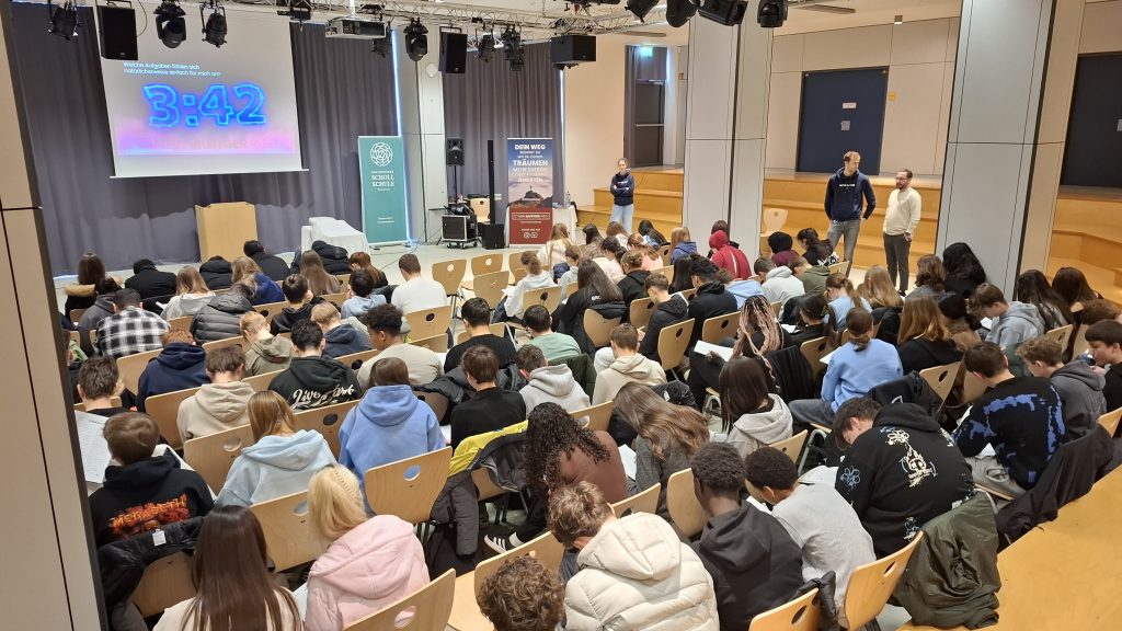 Heute fand an der GSS das Berufsorientierungsprogramm MEIN MUTIGER WEG statt. Insgesamt nahmen vier neunte Realschulklassen an dem Angebot teil, das sich intensiv mit Fragen der persönlichen Zukunfts- und Berufsorientierung beschäftigte.