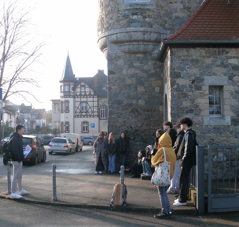 Im Rahmen des Geschwister-Scholl-Gedenktags besuchte die Klasse 10Ga gemeinsam mit Frau Seidel und Herrn Sonntag mehrere Gedenkorte in Bensheim. Die Exkursion bot uns die Gelegenheit, uns intensiv mit der lokalen Geschichte während der Zeit des Nationalsozialismus auseinanderzusetzen. Ein besonderer Schwerpunkt lag auf den Ereignissen der letzten Monate des Zweiten Weltkriegs, insbesondere auf den sogenannten Kirchbergmorden. Der erste Teil der Exkursion wurde von Herrn Pascal Harter vom Team des Stadtmuseums Bensheim geleitet. Anschaulich und adressatengerecht schilderte er die letzten Tage der NS-Diktatur in Bensheim und verdeutlichte, wie sich die Gewaltherrschaft des Regimes auch in unserer unmittelbaren Umgebung zeigte. Auf dem Weg vom Amtsgericht, das damals als Gefängnis der Gestapo genutzt wurde, zur Gedenkstätte am Kirchberg erfuhren wir mehr über die dort verübten Gewaltverbrechen in den letzten Kriegstagen. Die Gedenkorte erinnern an Menschen, die Opfer von Willkür, Unmenschlichkeit und fanatischer Ideologie wurden. Diese Taten zählen zu den sogenannten Endphaseverbrechen und zeigen eindrücklich, wie brutal und rücksichtslos das Regime bis zu seinem Zusammenbruch handelte. Neben dem Kirchberg besuchten wir weitere Erinnerungsorte in der Stadt, darunter die ehemalige Synagoge, die während der Reichspogromnacht zerstört wurde. Diese Orte führen uns vor Augen, dass die nationalsozialistischen Verbrechen nicht nur ein abstrakter Teil der deutschen Geschichte sind, sondern sich auch unmittelbar hier in Bensheim ereignet haben. Die Exkursion regte zum Nachdenken an und machte deutlich, wie wichtig es ist, sich aktiv mit der Geschichte auseinanderzusetzen. Nur durch Erinnerung und Aufklärung können wir aus der Vergangenheit lernen und dazu beitragen, dass sich solche Verbrechen nicht wiederholen.